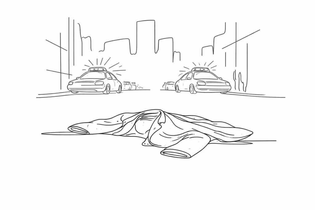 Camice bianco cura il respiro, ora giace a terra come una preghiera senza voce. L’asfalto freddo conserva domande come fiori sotto la neve. Sirene tagliano l’aria, la città piange in silenzio e il vento passa sulle ferite scoperte. La notte colpisce, come un manganello: una lezione imparata a forza. Mani alzate, inermi, cadono come neve sporca. Ciò che resta del silenzio sono singhiozzi trattenuti. Paura che chiede una libertà ancora viva. MM